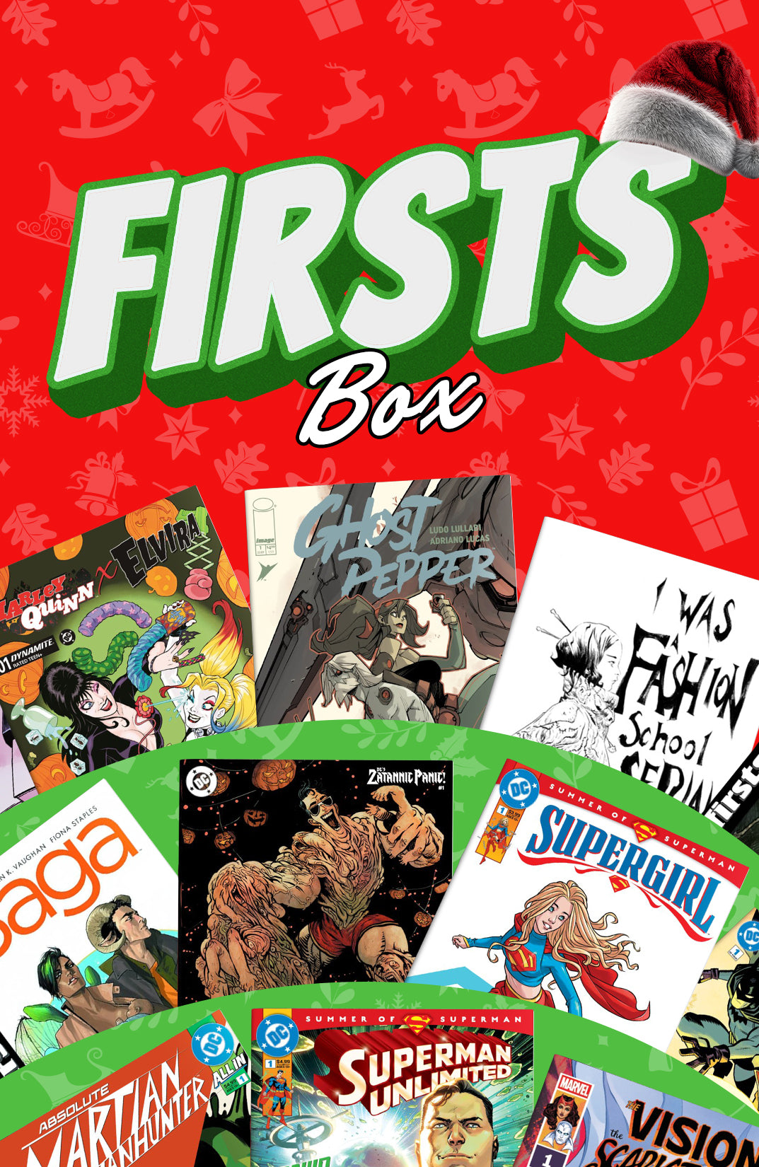 Kickstart your comic‑book adventure with our Firsts Box – the perfect gateway for new readers and a collector’s dream. This holiday‑themed mystery box includes ten issue‑#1 comics carefully curated by FOMO Books to introduce you to some of the most exciting stories in the world of comics.