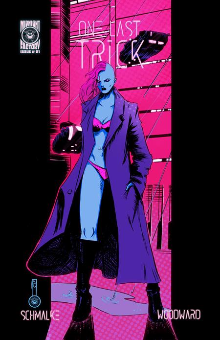 Midnight Factory Presents: One Last Trick. Julie Bennings is a cybernetic escort. Indebted to the Chambers Corporation for their life saving augments, she has one last job and then her debt is paid. But everyone knows the Chambers Corporation never lets anyone go. Julie soon will discover the truth about the company that dominates mankind. A cyberpunk noir story with eldritch horror, written and created by Joseph Schmalke (We Don’t Kill Spiders, the Electric Black, and Seven Years in Darkness) with stunning artwork by co-creator J.K. Woodward (Star Trek, X-Men Origins, and Heavy Metal).